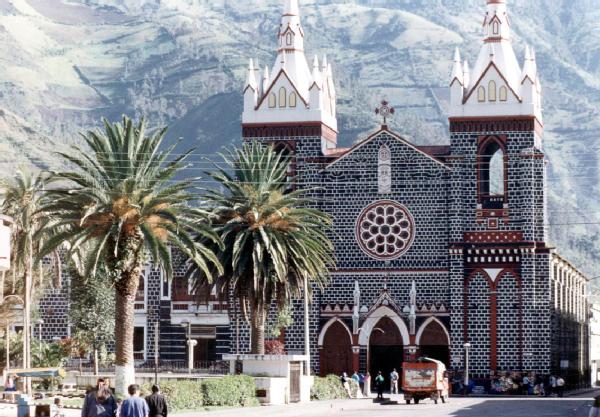 And now, for the wrap up of our adventure, we are in Baños. Baños itself cannot be described in just a few words. Tucked into the middle of the country, hidden by sloping mountains as if it is a fortress. It has it´s own sacred virgin who protects the town. The towering black basillica is lined with giant oil paintings of miracles in the city where the Virgin de Aguas Calientes has been sighted; saving people from burning buildings, stopping car crashes. Tungurahua, the active volcano above Baños, spewed fiery lava a few days ago, issuing an orange alert. We´re going to see it tonight.